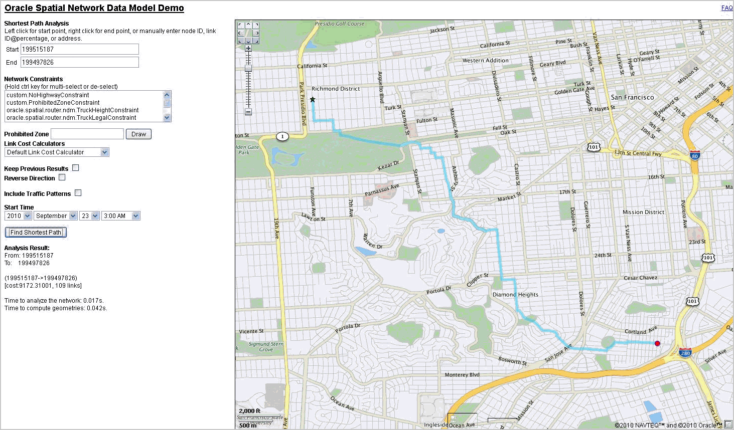 ndm_tutorial.ziponhttp://www.oracle.com/technetwork/indexes/samplecode/spatial-1433316.html) outlines the steps to set up and configure a network, and to conduct the analysis. It also includes sample code and a web application that demonstrates how to use Oracle Maps to display analysis results. -
