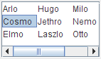 The call to setLayoutOrientation lets the list display its data in multiple columns. The value JList.HORIZONTAL_WRAP specifies that the list should display its items from left to right before wrapping to a new row. Another possible value is JList.VERTICAL_WRAP, which specifies that the data be displayed from top to bottom (as usual) before wrapping to a new column. The following figures show these two wrapping possibilities, together with the default, JList.VERTICAL.