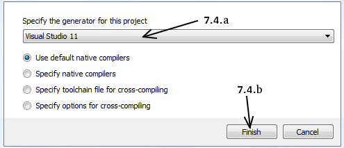 It will open a new window to select the compiler. Choose appropriate compiler (here, Visual Studio 11) and click Finish.