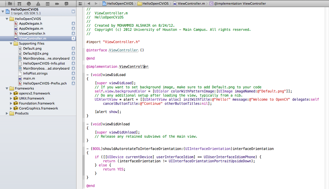 Now we will learn how to write a simple Hello World Application in Xcode using OpenCV.