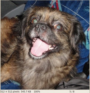 First, we try to threshold our image with a binary threshold inverted. We expect that the pixels brighter than the \(thresh\) will turn dark, which is what actually happens, as we can see in the snapshot below (notice from the original image, that the doggie's tongue and eyes are particularly bright in comparison with the image, this is reflected in the output image).