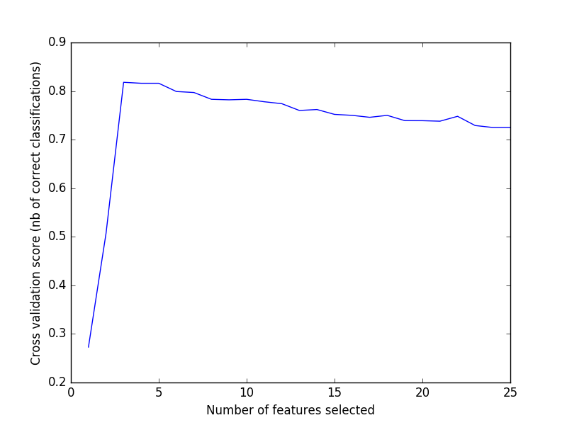 print("Optimal number of features : %d" % rfecv.n_features_)