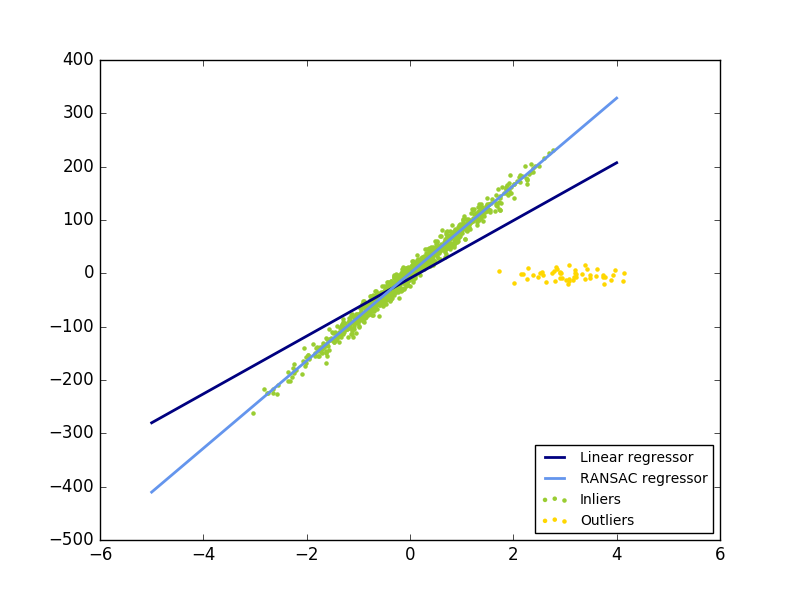 In this example we see how to robustly fit a linear model to faulty data using the RANSAC algorithm.