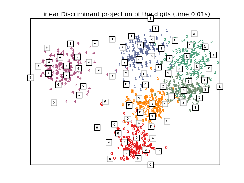 "Linear Discriminant projection of the digits (time %.2fs)" %