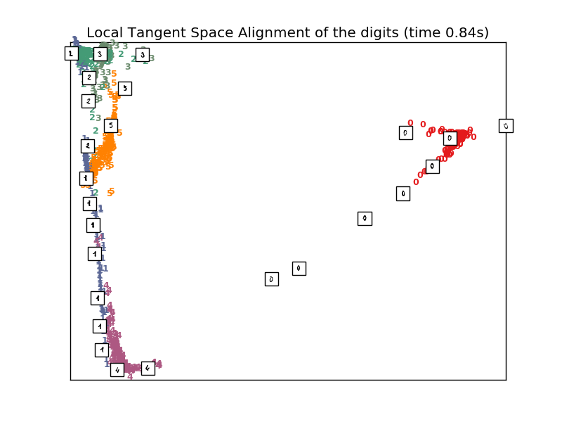 "Local Tangent Space Alignment of the digits (time %.2fs)" %