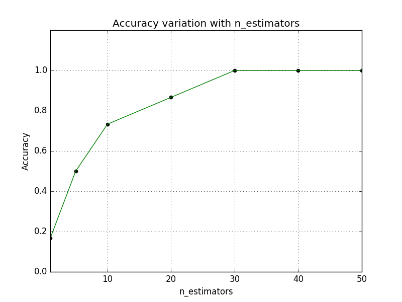 n_estimators_values = [1, 5, 10, 20, 30, 40, 50]