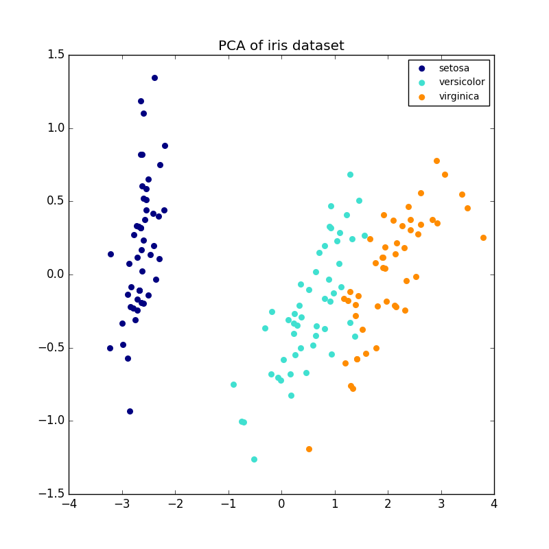 Below is an example of the iris dataset, which is comprised of 4 features, projected on the 2 dimensions that explain most variance: