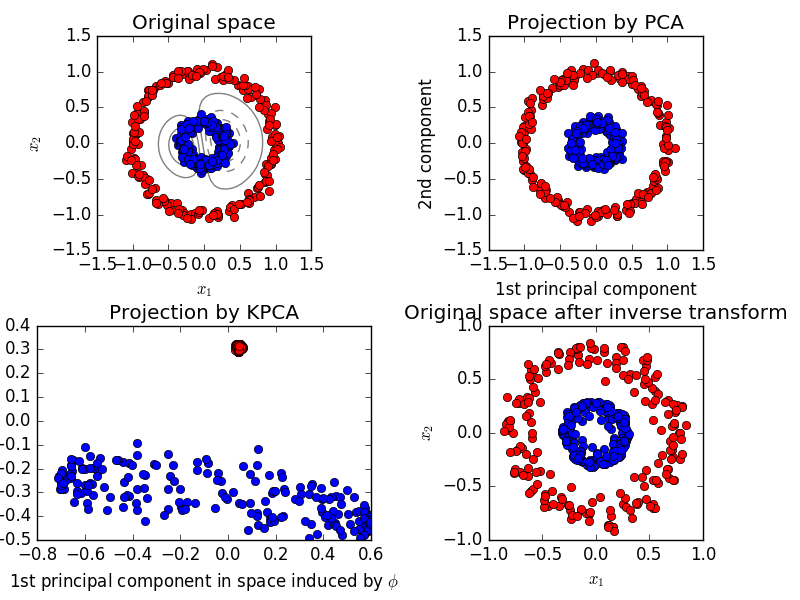 dimensionality reduction through the use of kernels (see Pairwise metrics, Affinities and Kernels). It
